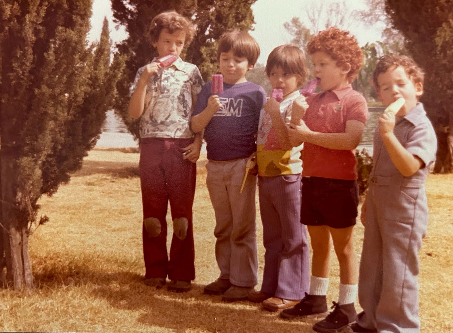 Just a few years ago, Adriana made a scrapbook of my life for my 30th birthday. While looking for a picture when I was around ten, I found a page with photos of my cousins and me from when I lived in Mexico City. Seeing those photos made me think about scanning them and giving them to my aunt for her 75th birthday as a belated gift.
